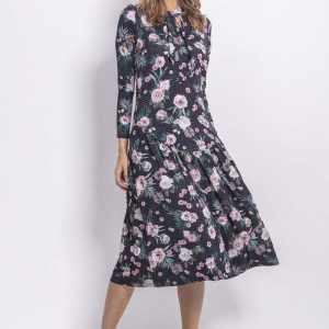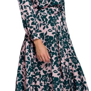 Midi Sukienka w Różowe Kwiaty