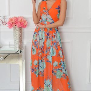 Sukienka maxi w zielone kwiaty pomarańcz Lukrecja Rozmiar: M