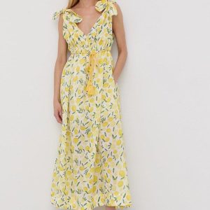 Twinset sukienka kolor żółty midi rozkloszowana