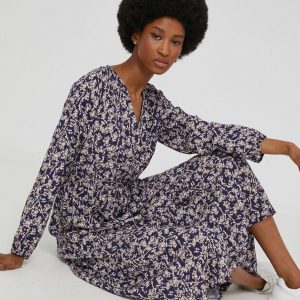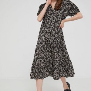 Answear Lab sukienka bawełniana kolor czarny midi rozkloszowana
