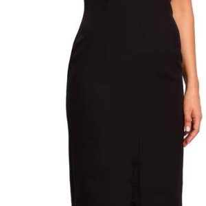 Numoco Czarna Sukienka Elegancka Midi z Zaznaczoną Talią