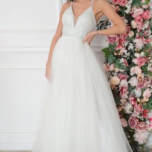 Sukienka maxi brokatowa z tiulem biała Medina Rozmiar: L