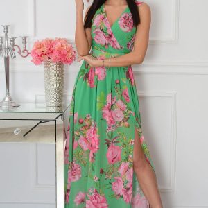 Sukienka maxi w różowe kwiaty zielona Lukrecja Rozmiar: XS