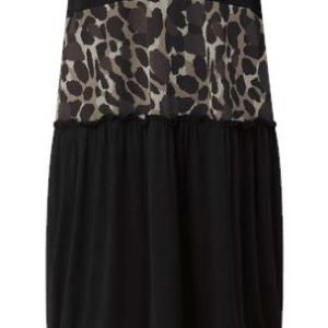 Fobya Krótka Zwiewna Sukienka w Panterkę z Długim Rękawem