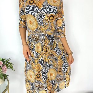 Wzorzysta Sukienka z Paskiem 7670-329