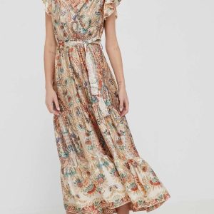 Answear Lab sukienka kolor beżowy maxi rozkloszowana