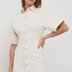 Pepe Jeans sukienka jeansowa KENZIE kolor beżowy mini rozkloszowana