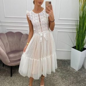 Sukienka koronkowa z tiulem midi Aurella biała m