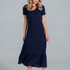 Szafirowa Subtelna Długa Sukienka z Falbankami