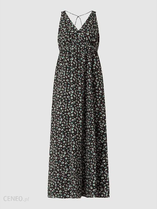 Długa sukienka damska ba&sh, Czysta bawełna , Taliowany krój , Wzór na całej powierzchni , Dekolt w serek , Szerokie ramiączka , Rozkloszowana spódnica , Głęboki dekolt z wiązaniem z tyłu , Długość tyłu w rozmiarze 36: 145 cm