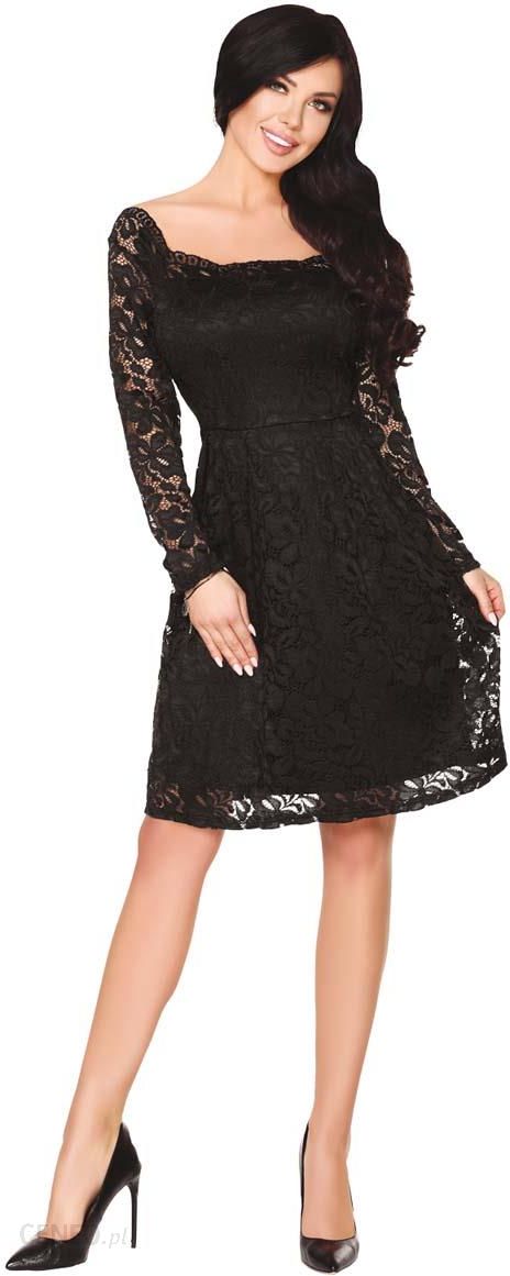 Merribel Czarna Rozkloszowana Sukienka z Koronki z Pięknym Dekoltem