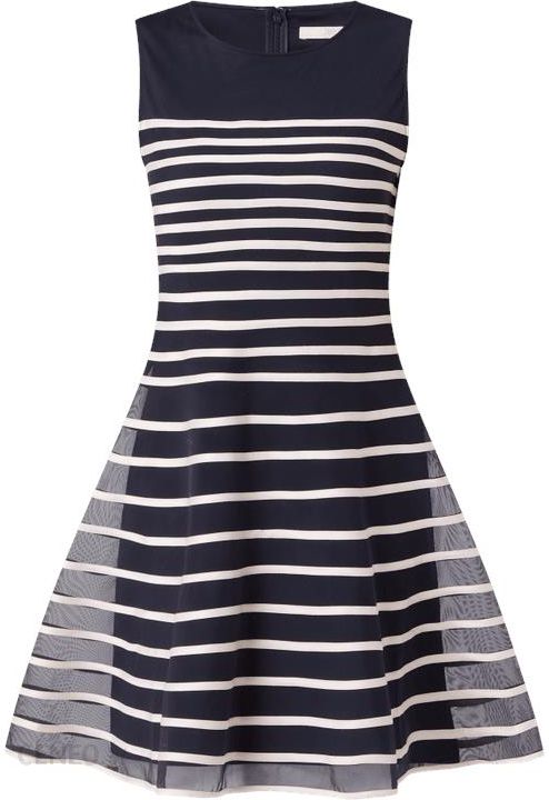 Sukienka koktajlowa damska Jake*s Cocktail, Siateczka, Taliowany krój bez rękawów , Wzór w paski , Okrągły dekolt , Rozkloszowana spódnica , Wszyty zamek błyskawiczny z tyłu , Nieprzejrzysta halka , Długość tyłu w rozmiarze 36: 90 cm