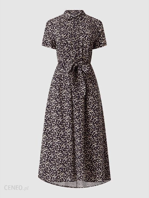 Sukienka midi damska MONTEGO, Czysta wiskoza , Taliowany krój , Wzór w kropki , Wykładany kołnierz , Krótkie rękawy , Pasek wiązany w talii , Rozkloszowana spódnica , Długość tyłu w rozmiarze 36: 128 cm