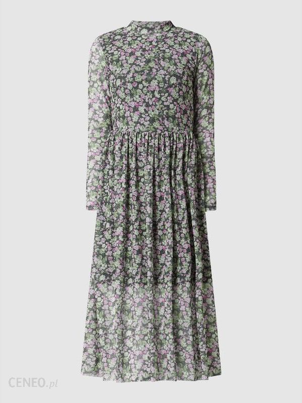 Sukienka midi damska TOM TAILOR Denim, Siateczka, Taliowany krój , Kwiatowy wzór , Stójka, Długie rękawy , Rozkloszowana spódnica z drobnymi marszczeniami, Halka z siateczki o kroju bez rękawów , Długość tyłu w rozmiarze S: 122 cm, Długość rękawa w rozmiarze S: 61 cm