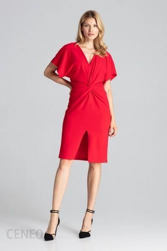 Czerwona, elegancka sukienka midi z krótkim, opadającym, kimonowym rękawem. Kopertowy dekolt. Przeszyta w pasie gumką z ozdobnym marszczeniem. Delikatne rozcięcie z przodu. Elastan 5 % Polyester 95 % RozmiarDługośćObwód w biodrachObwód w biuścieObwód w taliiL104 cm108 cm108 cm80 cmM103.5 cm104 cm104 cm76 cmS103 cm100 cm100 cm72 cmXL104.5 cm112 cm112 cm84 cm