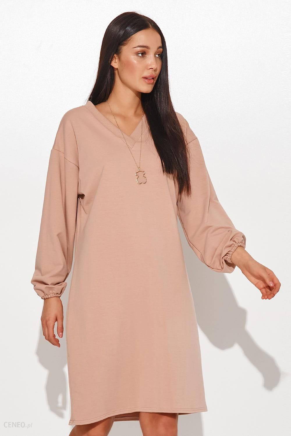 Niezwykle swobodna i komfortowa sukienka dresowa to idealna propozycja do pracy, jak i na luźne spotkanie z przyjaciółmi czy zabiegany dzień. Sukienka posiada jednolity kolor, dość głęboki dekolt w serek eksponujący obojczyki oraz urocze ściągacze na dystalnej części rękawów. Z tyłu posiada malutką naszywkę z sygnaturą Numinou. To jedna z tych casualowych sukienek, których wcale nie chce się zdejmować, gdy tylko wraca się do domu po całym dniu ciężkiej pracy. Ponieważ styl sukienki jest bardzo uniwersalny, można ją nosić na wiele sposobów od sportowego, po elegancki. Bawełna 95 % Elastan 5 % RozmiarDługośćObwód w biodrachObwód w biuście36/3898 cm116 cm104 cm40/4299 cm124 cm112 cm44/46100 cm132 cm120 cm