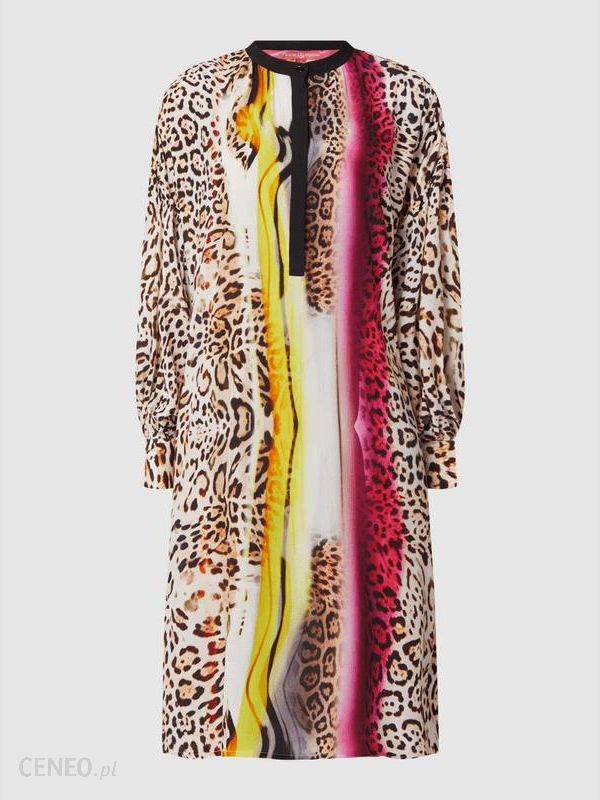 Sukienka damska yippie hippie, Mieszanka wiskozy i rayonu , Krój rozkloszowany , Zwierzęcy nadruk , Stójka , Obniżone ramiona , Listwa guzikowa , Wpuszczane kieszenie , Długość tyłu w rozmiarze S: 96 cm