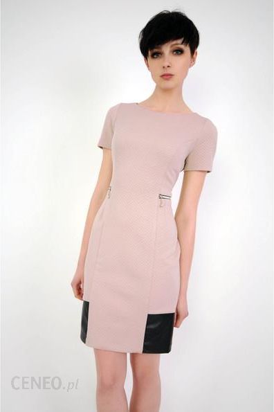 Klasyczna sukiennika z krótkim rękawkiem. Na wysokości talii ozdobne zamki błyskawiczne, na dole oryginalne wstawki z ekoskóry. Z tyłu zapięcie na kryty zamek błyskawiczny. Materiał: 60% cotton, 30% poliester, 10% elastan Długość sukienki: rozmiar 36 – 85 cm rozmiar 38 – 93 cm rozmiar 40 – 95 cm rozmiar 42 – 97 cm rozmiar 44 – 97 cm